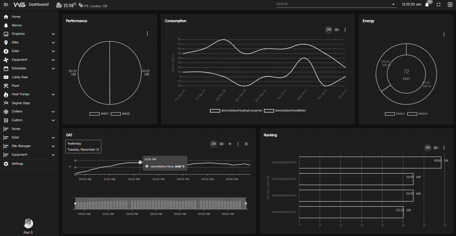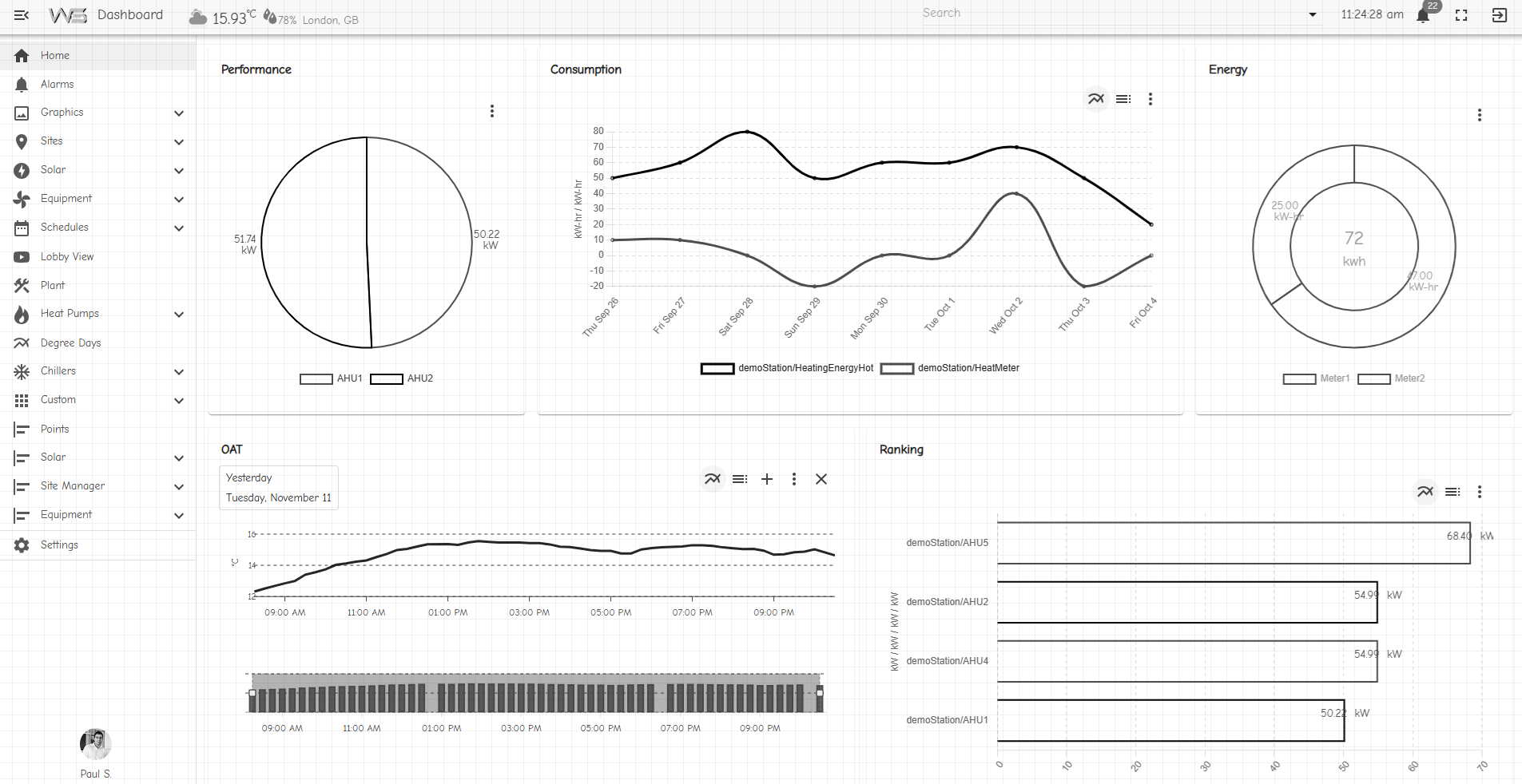 Dashboards- full html5 dashboards integrated into the Niagara station and includes over 50 widgets. Our main product is N4 View Builder™© Allows you to build custom views by dragging n' dropping widgets onto grid/tab style interface.